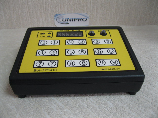 Регистратор весовых взвешиваний BOT-12T-UE предназначен для автоматизации учета весовых операций. Может применятся в розничной и оптовой торговле весовыми и штучными товарами (овощи, фрукты, одежда на вес и т.д.). Устройство хранит в памяти код клавиши, нажатой оператором, вес и цену товара в момент нажатия клавиши, а также дату и время операции.