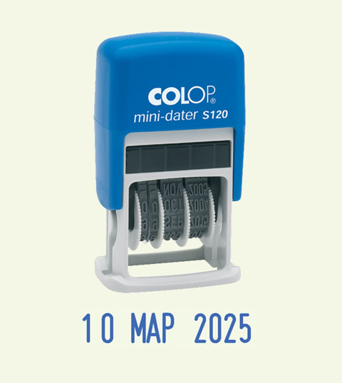 Датеры предназначены для проставления даты на продукции или документах. Смена даты происходит простым поворотом колесика ленточного механизма. Резиновые ленты датеров содержат цифры, а при помощи колесиков выбираются нужное значение.
