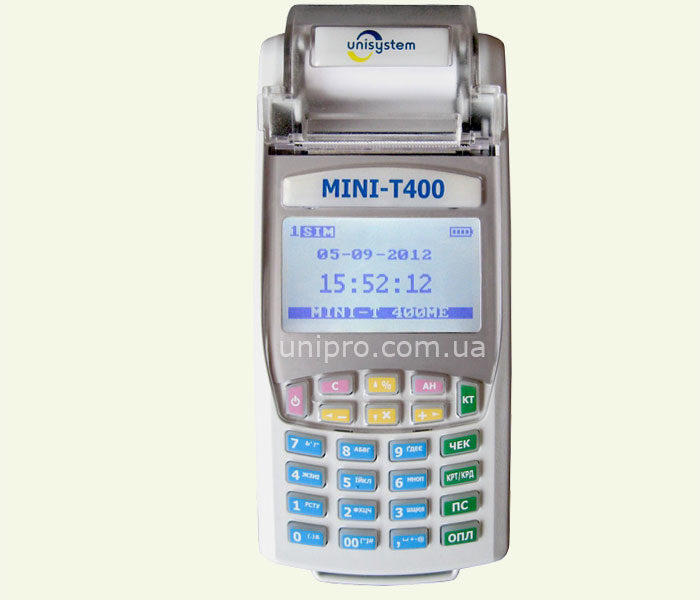 Одной из новейших моделей кассового аппарата, который оснащен модемом для передачи данных в налоговую инспекцию является мини т 400 (мини-т400ме). Мини т 400 имеет компактный размер и повышенную скорость печати. Заправка бумаги в мини т 400 происходит легко и быстро. Мини т 400 может работать совместно с компьютером, интеллектуальным модемом, сканером штрих кода, платежным терминалом и весами. Его надежность, небольшой размер и вес позволяет применять его в разных сферах торговой деятельность. Он может использоваться в магазинах, киосках, кафе, при выездной торговле и др. Мини т 400 многофункционален. Он является портативным и может долго держать заряд аккумулятора.