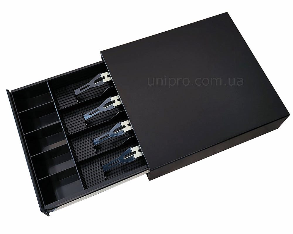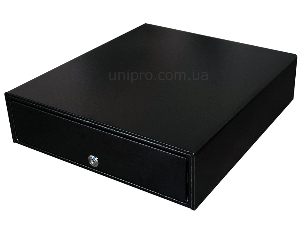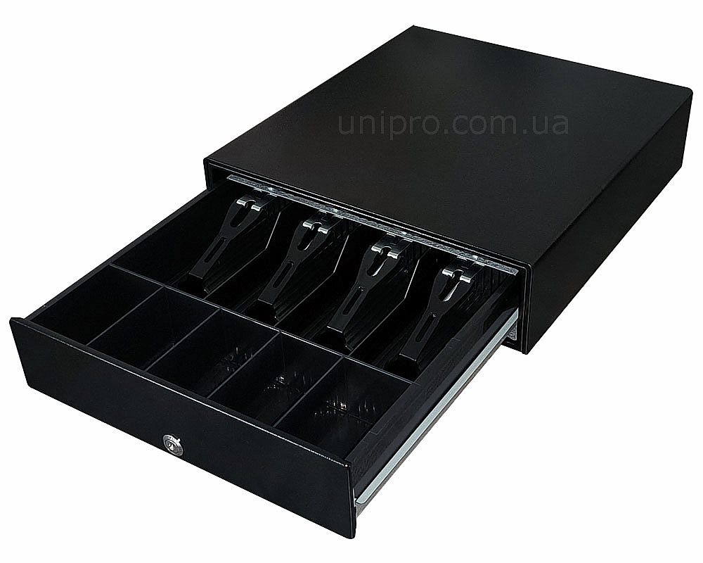 Надежный, металлический выдвижной денежный ящик HPC-13S (push-push). Может открываться как программно, управляющим сигналом, так и механически.