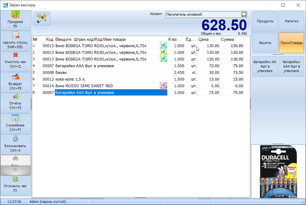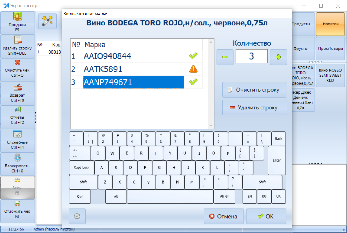 В программу добавлена возможность считывания ШК с акцизных марок алкогольных