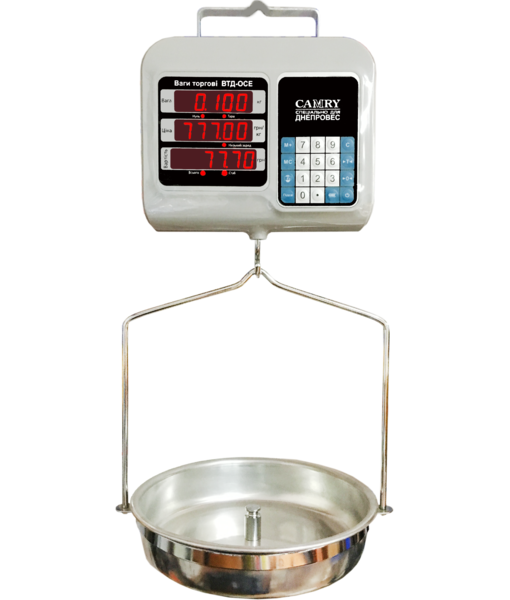 Подвесные торговые весы CAMRY Днепровес ВТД-ОCЕ, как и многие другие электронные весы, работают с функцией выборки массы тары. Максимальное значение веса тары на подвесных весах CAMRY ВТД-ОCЕ составляет почти 100 массы.